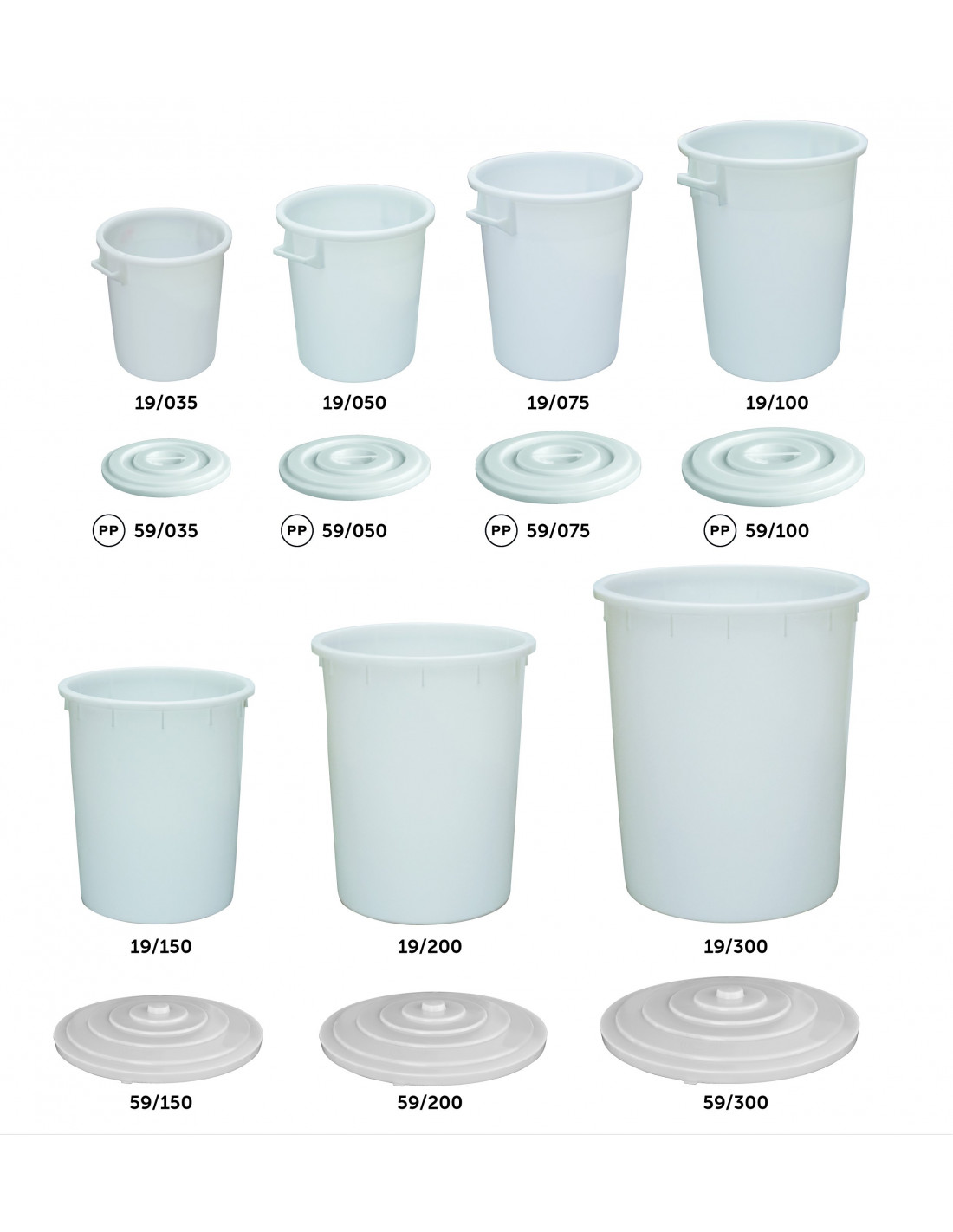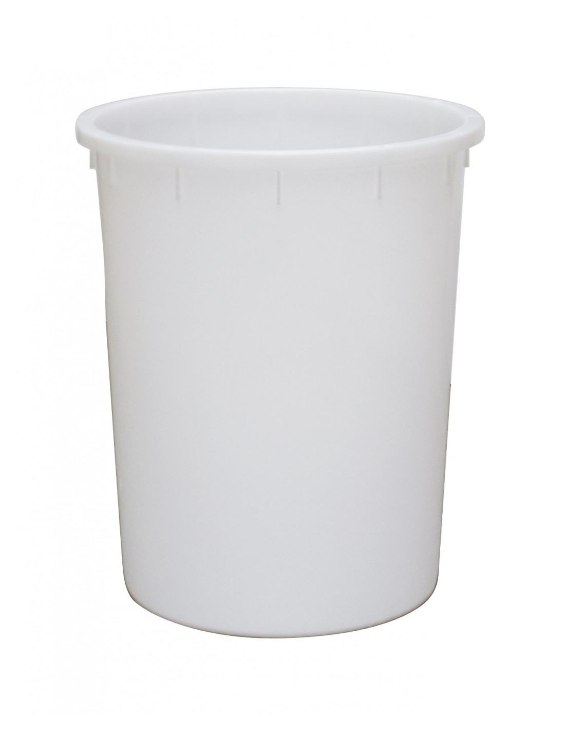Pratico bidone industriale in PEHD (Polietilene ad alta densità) di colore bianco neutro.