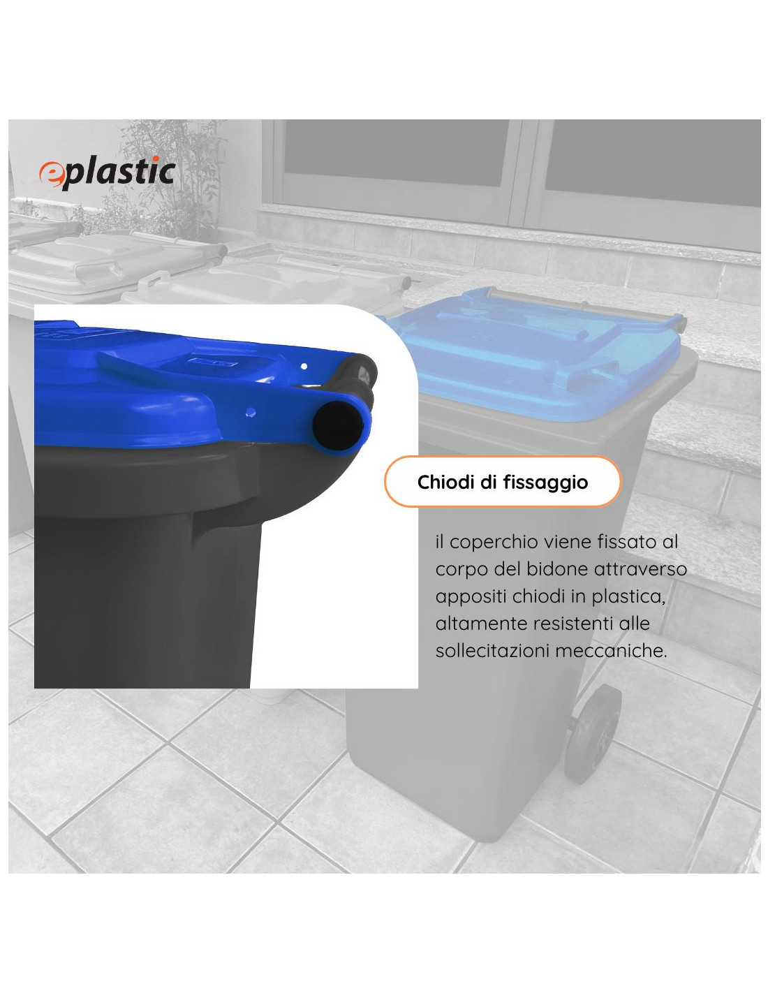 Per agganciare i sacchi, nei bidoni 80, 120, 240 e 360 litri è necessario acquistare gli articoli Anello fermasacco 120lt, Anello fermasacco 240 o Kit pedale + anello 80lt, 120lt, 240lt vendibili separatamente.