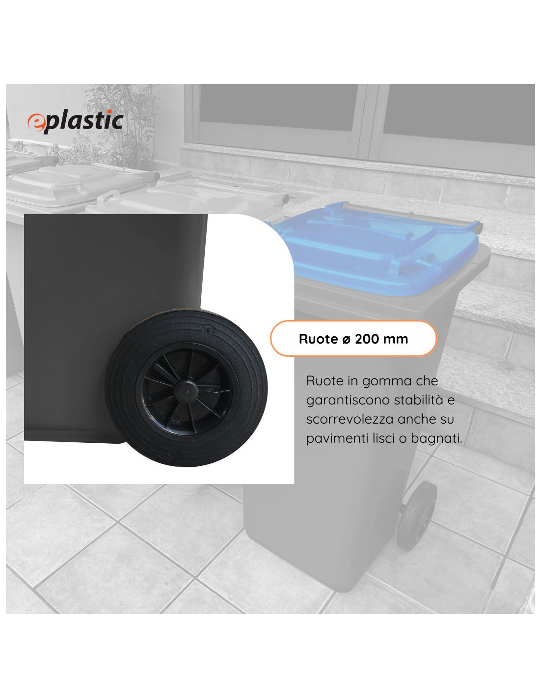 Le ruote dei bidoni per raccolta differenziata sono tutte in gomma