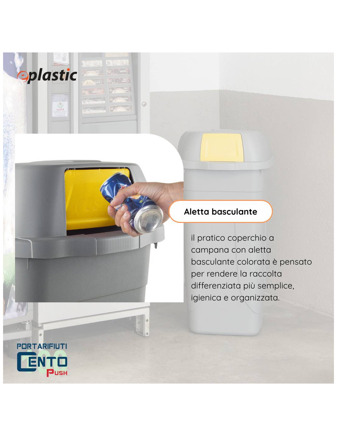 Il bidone da 100 litri con coperchio a campana e aletta basculante colorata è la soluzione perfetta per chi cerca un prodotto resistente, pratico e funzionale per la raccolta dei rifiuti. Con una capienza di 100 litri, offre ampio spazio per contenere vari tipi di materiali, dalla plastica alla carta, fino ai rifiuti organici, rendendolo ideale per la raccolta differenziata sia in ambito domestico che commerciale. Il coperchio a campana garantisce una chiusura sicura e protegge il contenuto da polvere, sporco e odori, mentre l'aletta basculante permette un accesso facile e veloce senza la necessità di rimuovere il coperchio, rendendolo pratico per un uso quotidiano.