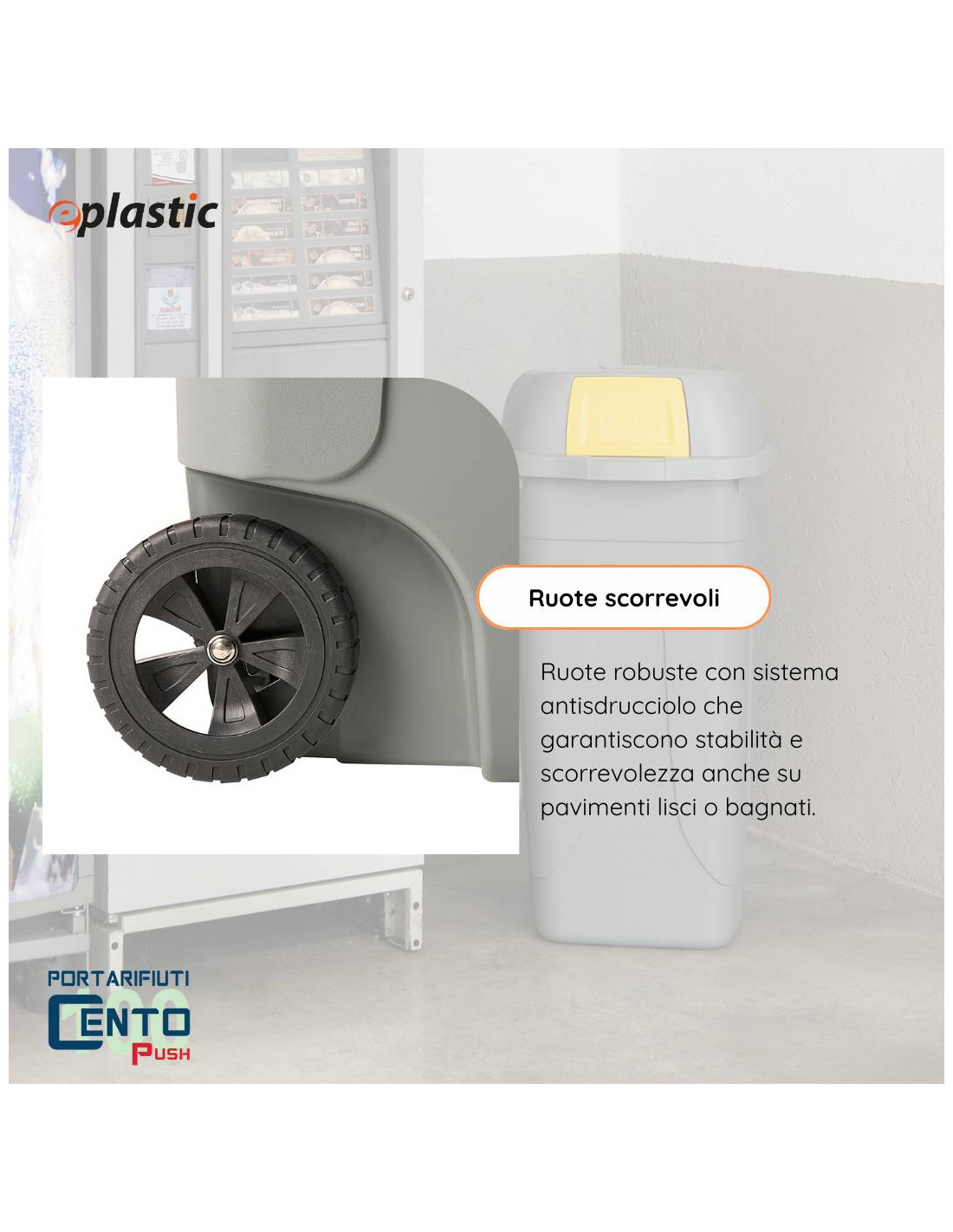 - Ruote robuste con sistema antisdrucciolo