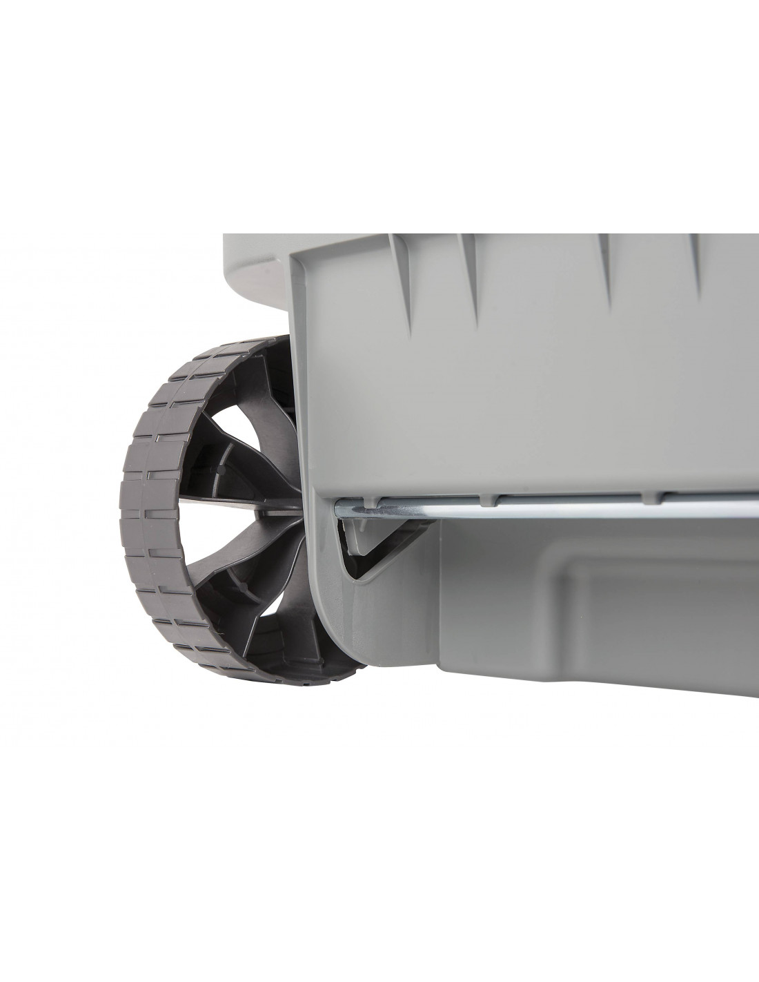 Viene fornito con assale in acciaio zincato e ruote con diametro 14,3 cm pre-montati.