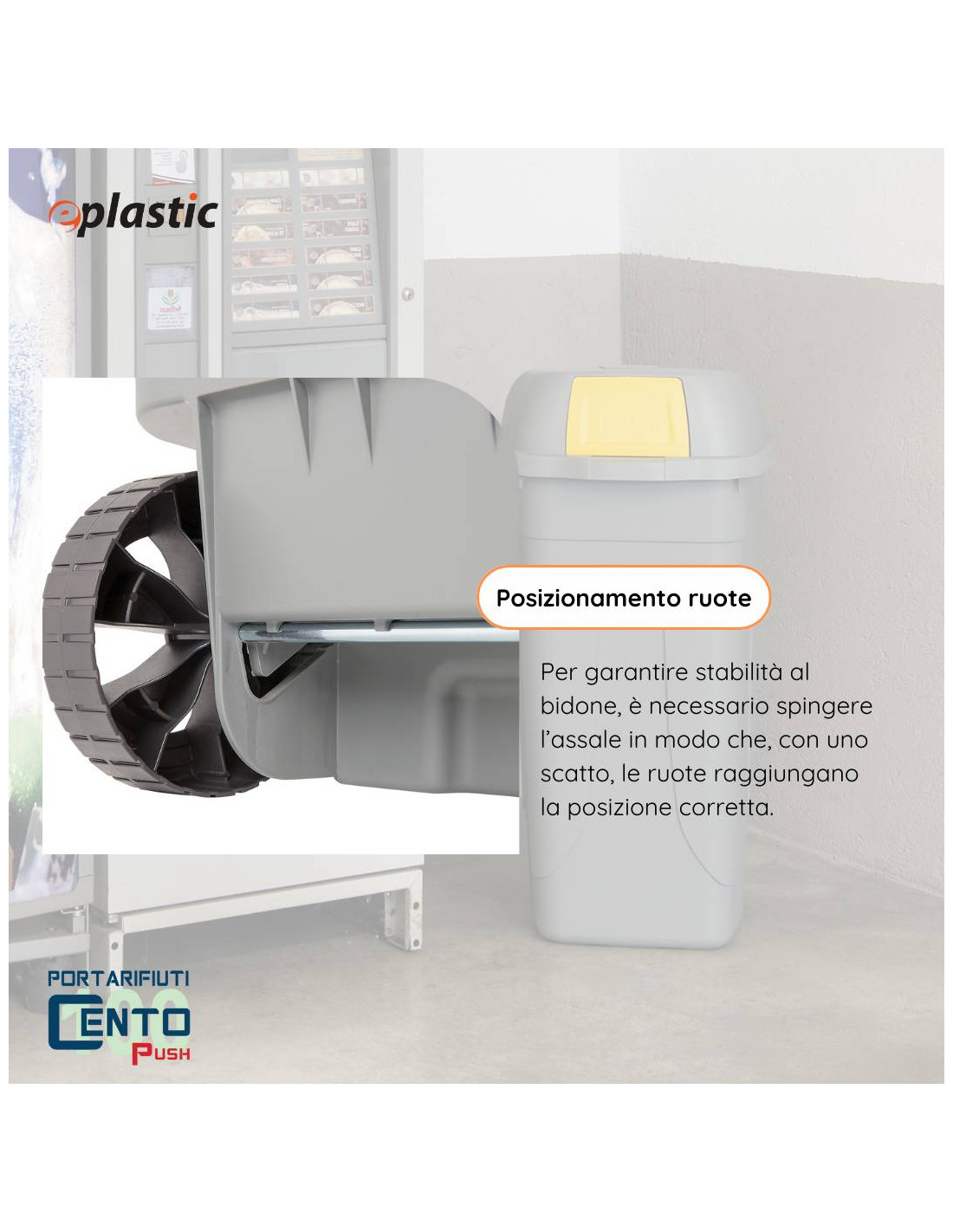 Le ruote non sono dotate di freno, ma a seconda della loro posizione rendono il bidone più o meno stabile.