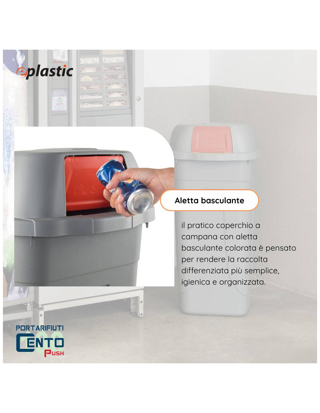 Il bidone da 100 litri con coperchio a campana e aletta basculante colorata è la soluzione perfetta per chi cerca un prodotto resistente, pratico e funzionale per la raccolta dei rifiuti. Con una capienza di 100 litri, offre ampio spazio per contenere vari tipi di materiali, dalla plastica alla carta, fino ai rifiuti organici, rendendolo ideale per la raccolta differenziata sia in ambito domestico che commerciale. Il coperchio a campana garantisce una chiusura sicura e protegge il contenuto da polvere, sporco e odori, mentre l'aletta basculante permette un accesso facile e veloce senza la necessità di rimuovere il coperchio, rendendolo pratico per un uso quotidiano.