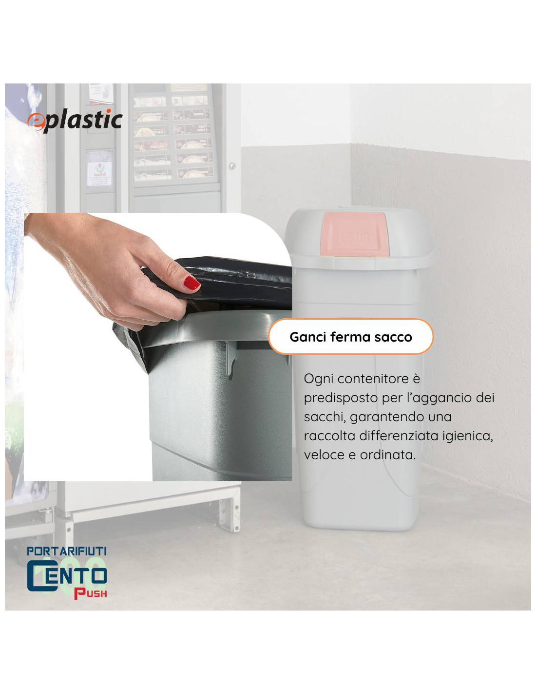 L’anello di fissaggio è già parte integrante del coperchio, mentre non è previsto negli altri bidoni per raccolta differenziata