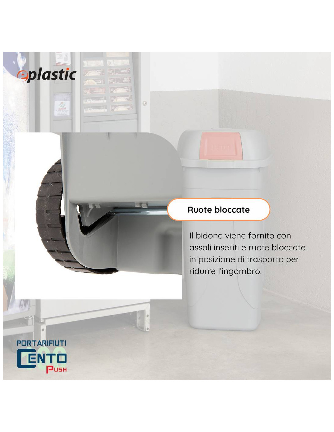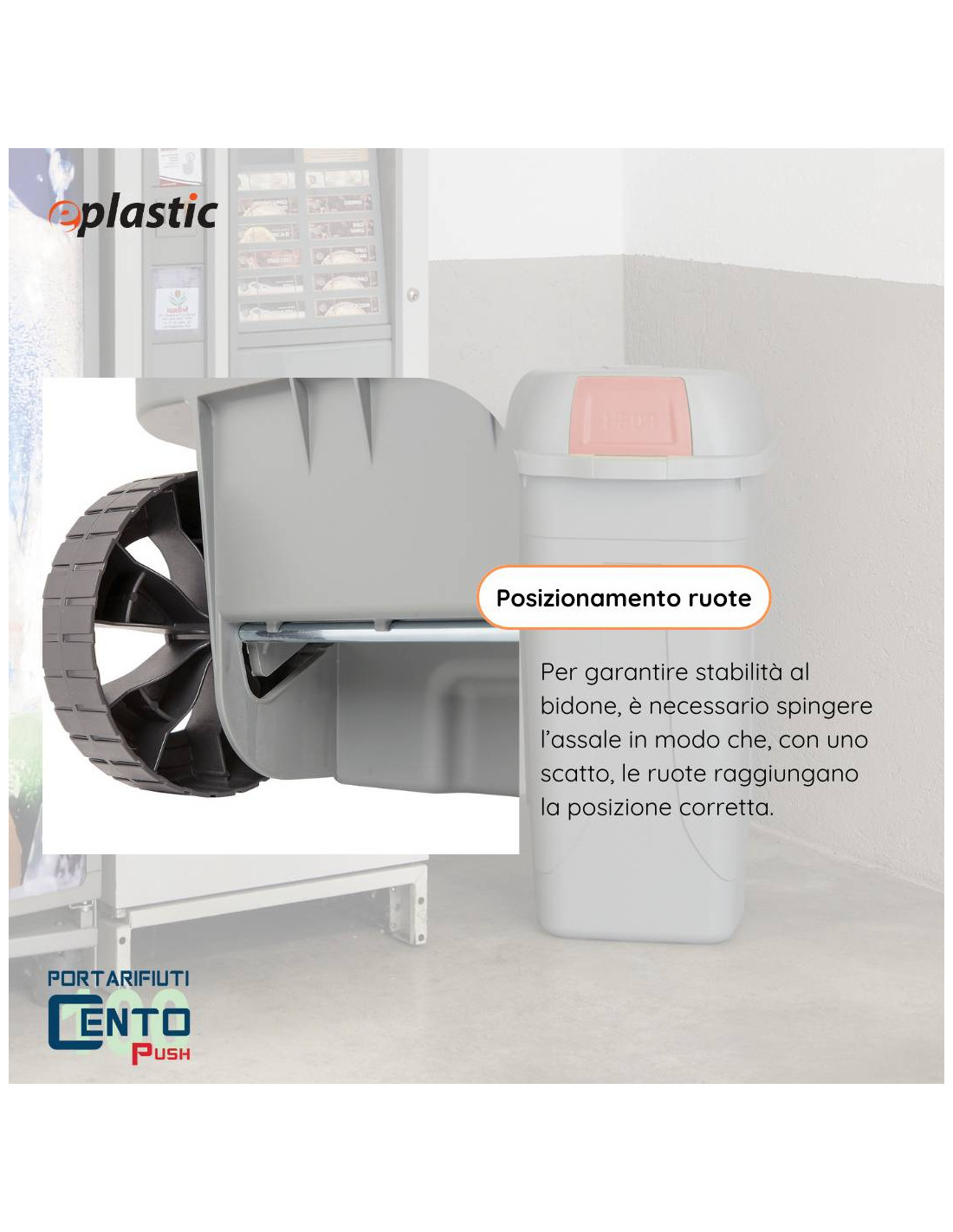 Le ruote non sono dotate di freno, ma a seconda della loro posizione rendono il bidone più o meno stabile.