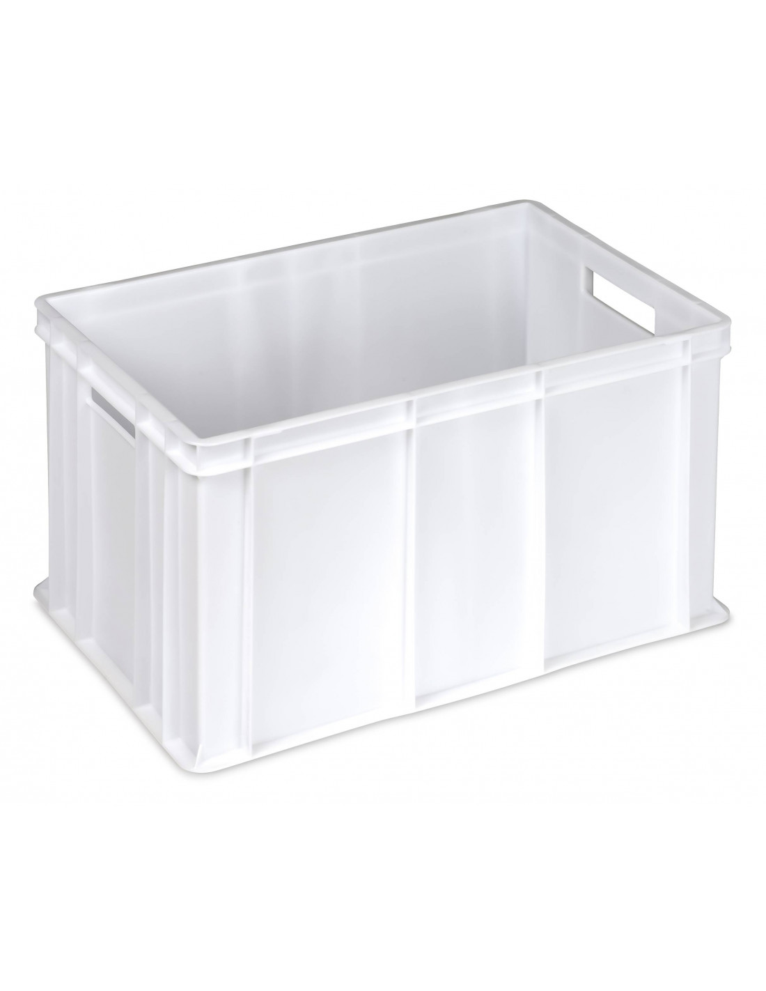 Cassa sovrapponibile ed impilabile con fondo e pareti pieni in PP (Polipropilene), di colore bianco neutro