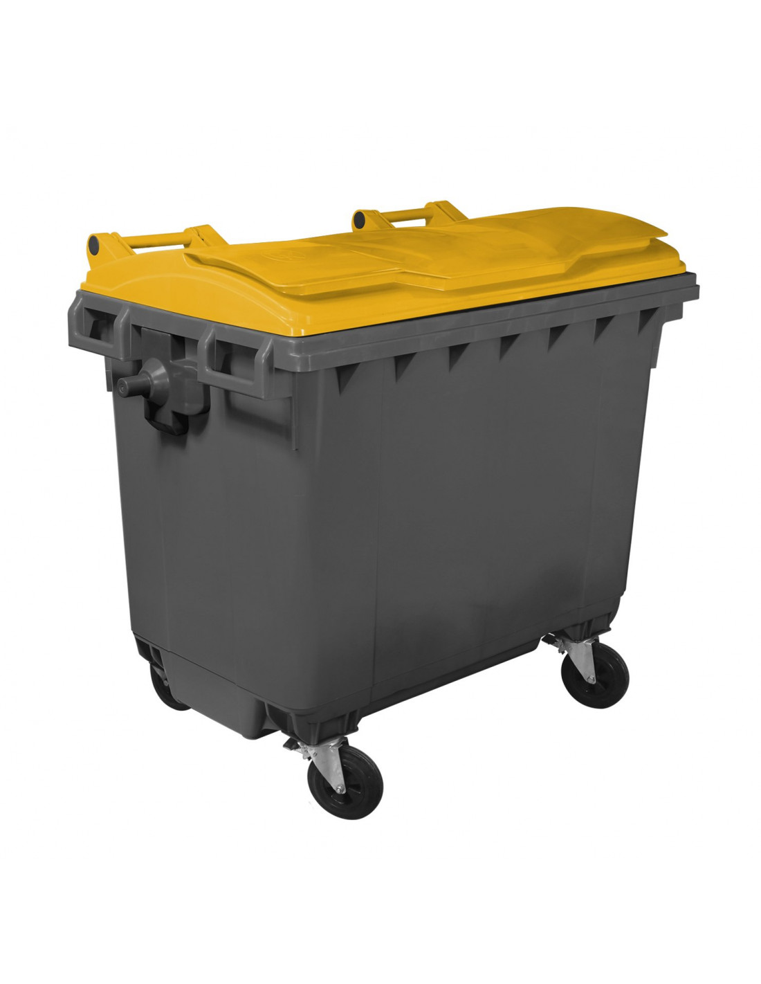 Cassonetto 4 ruote 660 litri da esterno porta rifiuti in PEHD (Polietilene ad alta densità) bicolor con fondo grigio e coperchio piano colorato: blu, giallo o verde chiaro.