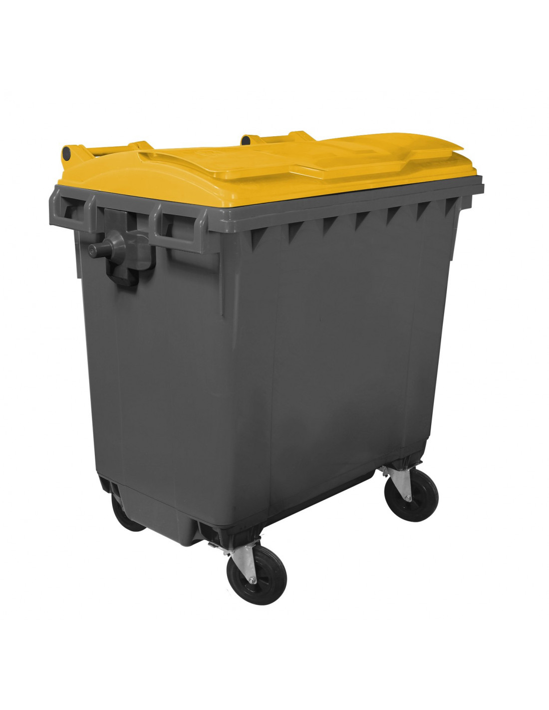 Cassonetto 4 ruote 770 litri da esterno porta rifiuti in PEHD (Polietilene ad alta densità) bicolor con fondo grigio e coperchio piano colorato: blu, giallo o verde chiaro