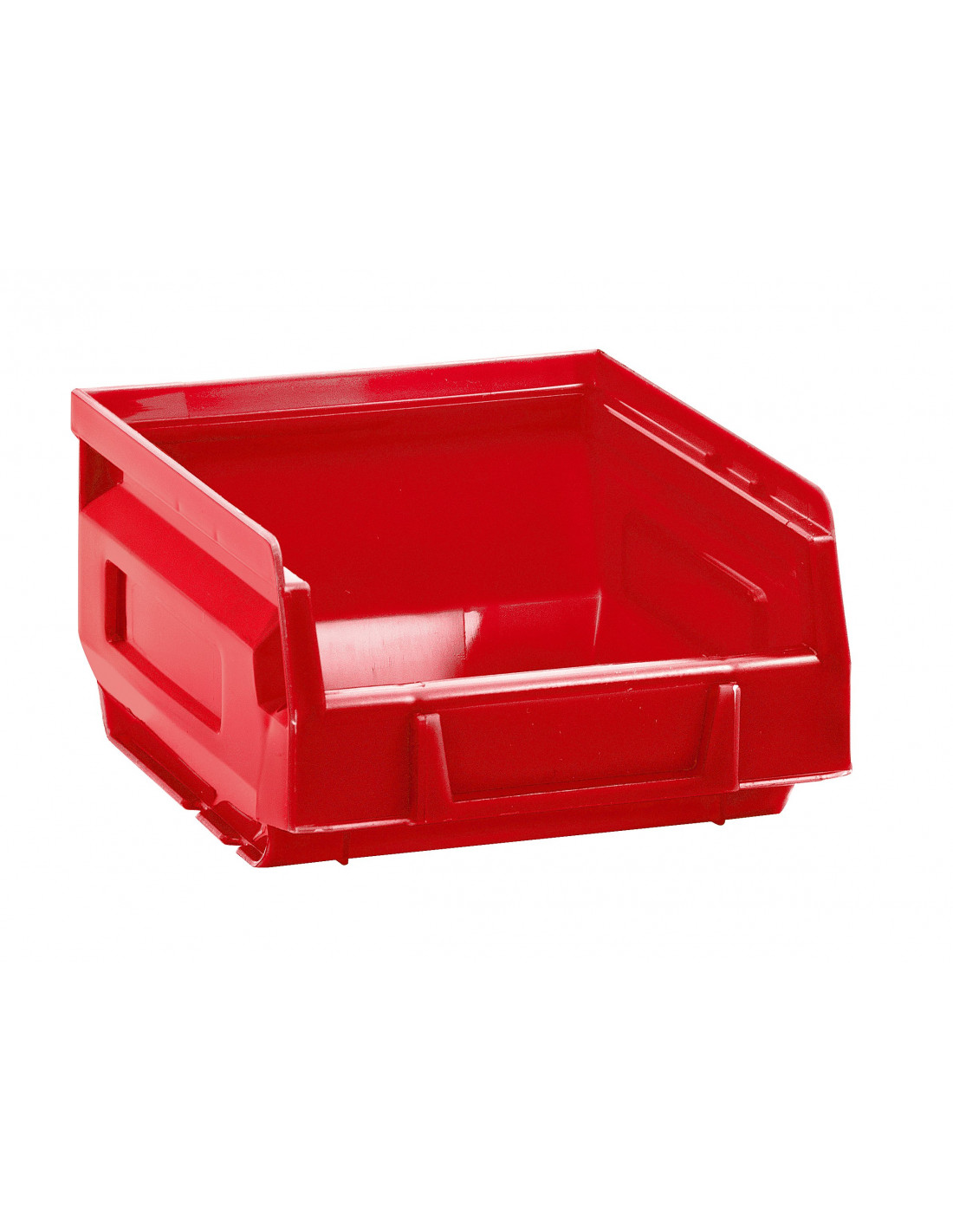 Contenitore a bocca di lupo sovrapponibile (impilabile), dotato di linguetta per aggancio nella parte posteriore, realizzato in PEHD (Polietilene ad alta densità). Disponibile nelle varianti di colore: blu, giallo, grigio, rosso o verde.