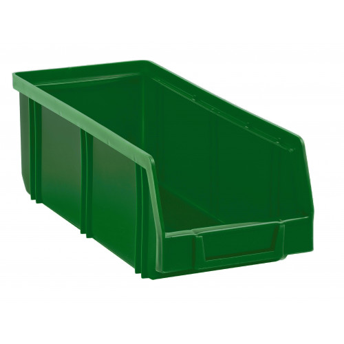 Contenitore a bocca di lupo sovrapponibile (impilabile), dotato di linguetta per aggancio nella parte posteriore, realizzato in PEHD (Polietilene ad alta densità). Disponibile nelle varianti di colore: blu, giallo, grigio, rosso o verde.