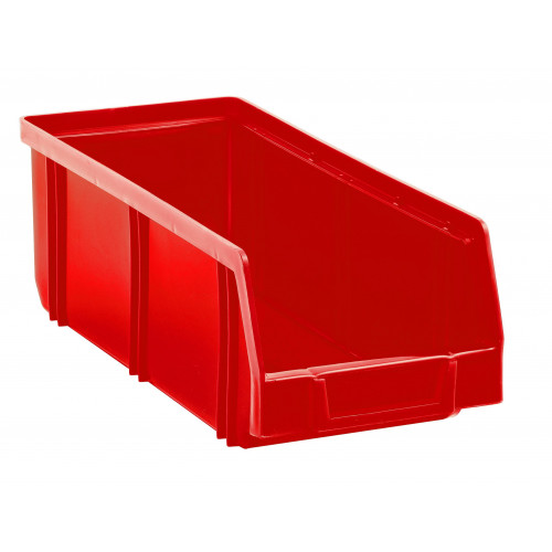 Contenitore a bocca di lupo sovrapponibile (impilabile), dotato di linguetta per aggancio nella parte posteriore, realizzato in PEHD (Polietilene ad alta densità). Disponibile nelle varianti di colore: blu, giallo, grigio, rosso o verde.