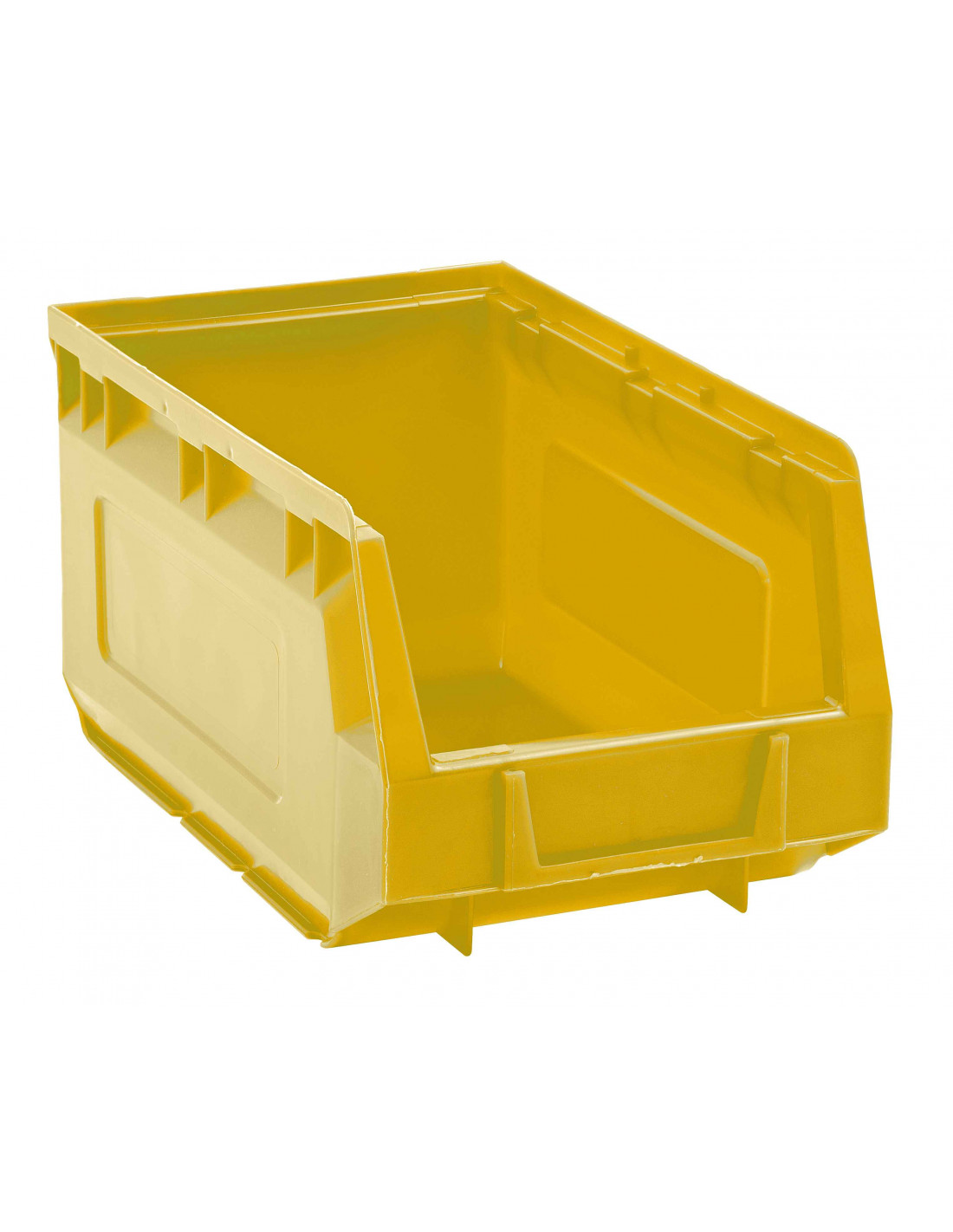 Set di 9 contenitori a bocca di lupo sovrapponibili (impilabili), dotati di linguetta per aggancio nella parte posteriore e realizzati in PEHD. Disponibili nei colori: blu, giallo, grigio, rosso o verde.