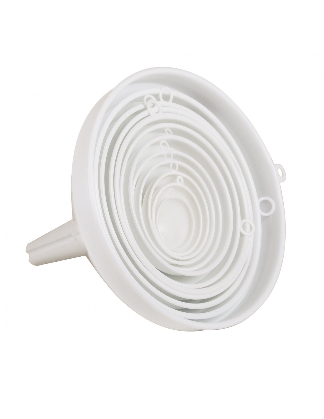 Pratico e resistente imbuto in PP (Polipropilene) bianco, idoneo al contatto con alimenti
