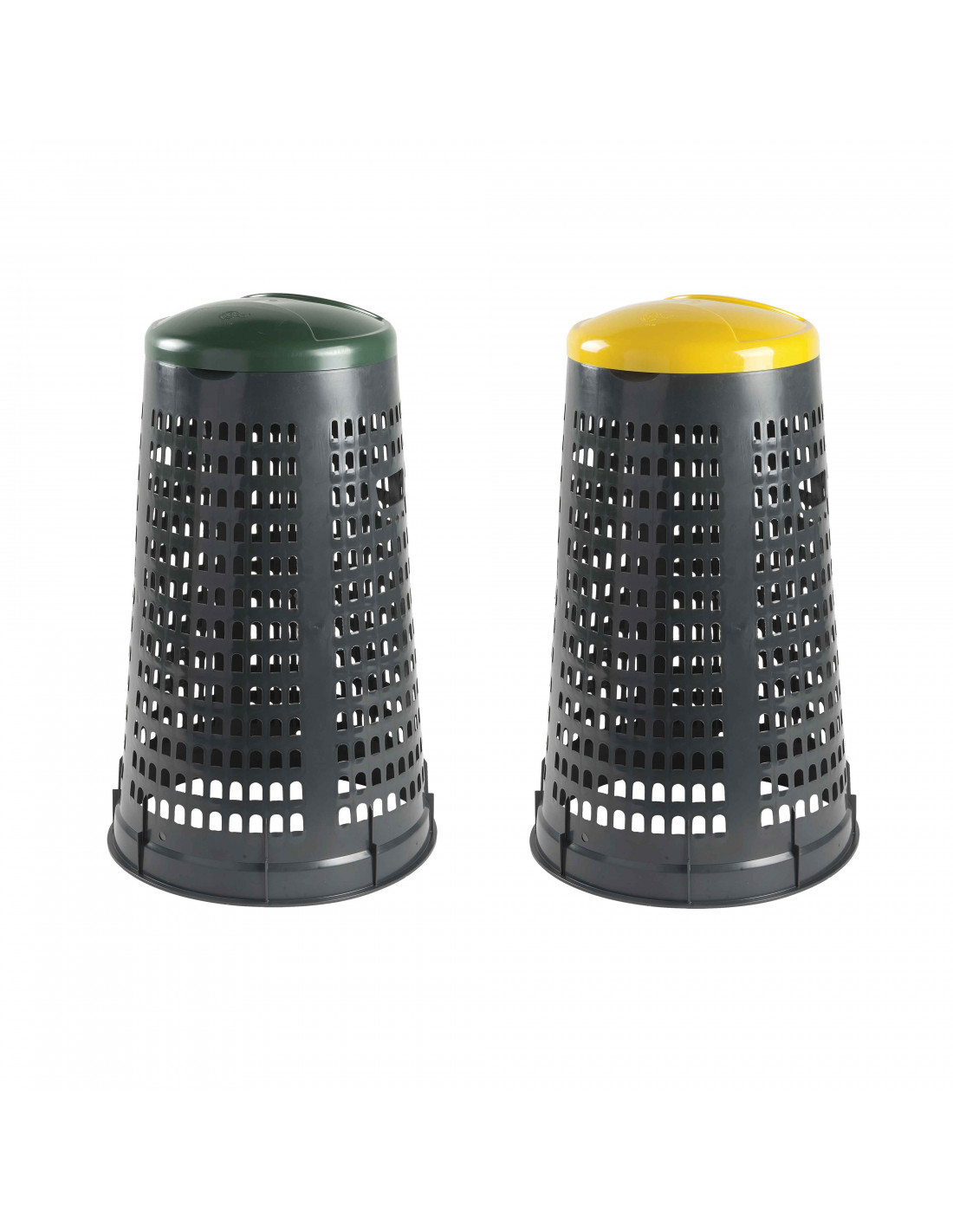 Set con 2 trespoli leggeri e facilmente sollevabili, pratici e semplici da utilizzare in PEHD (Polietilene ad alta densità) con fondo grigio e coperchio colorato: blu, giallo, rosso o verde.