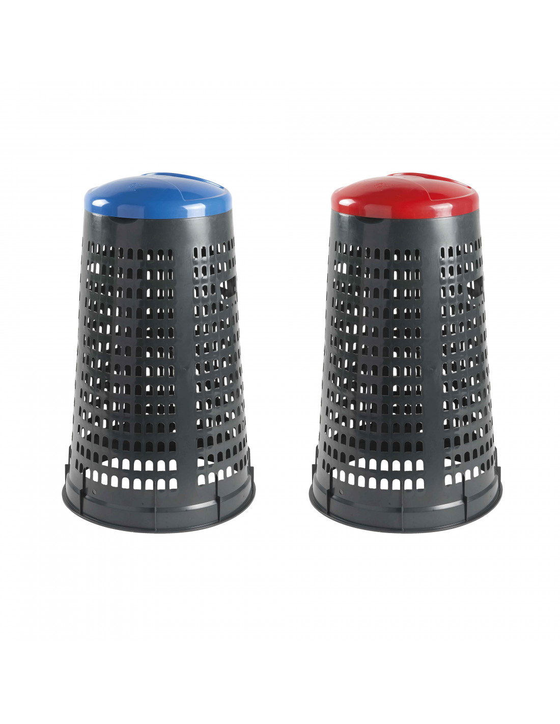 Set con 2 trespoli leggeri e facilmente sollevabili, pratici e semplici da utilizzare in PEHD (Polietilene ad alta densità) con fondo grigio e coperchio colorato: blu, giallo, rosso o verde.