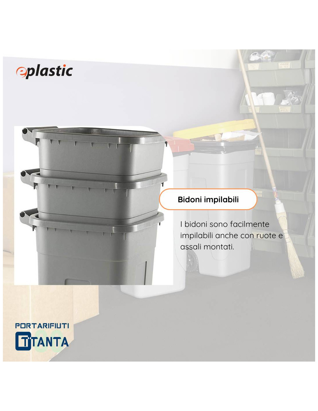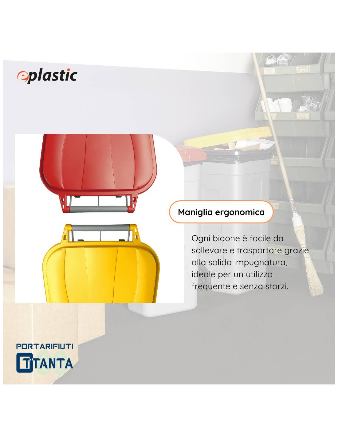 Si tratta di un bidone adatto sia ad uso interno che esterno, leggero e facile da trasportare con elevata resistenza ad agenti atmosferici e chimici; ideale per la raccolta differenziata.