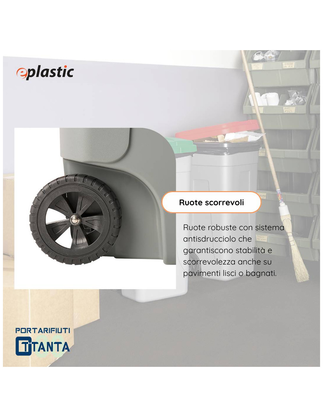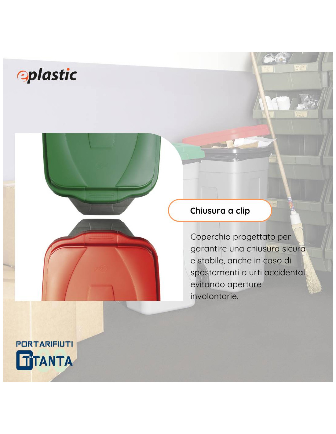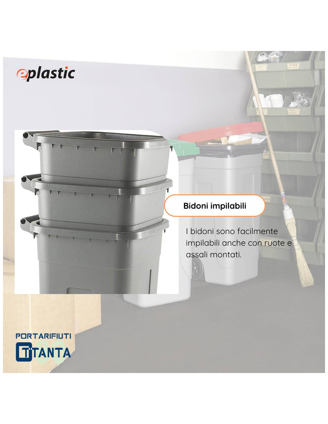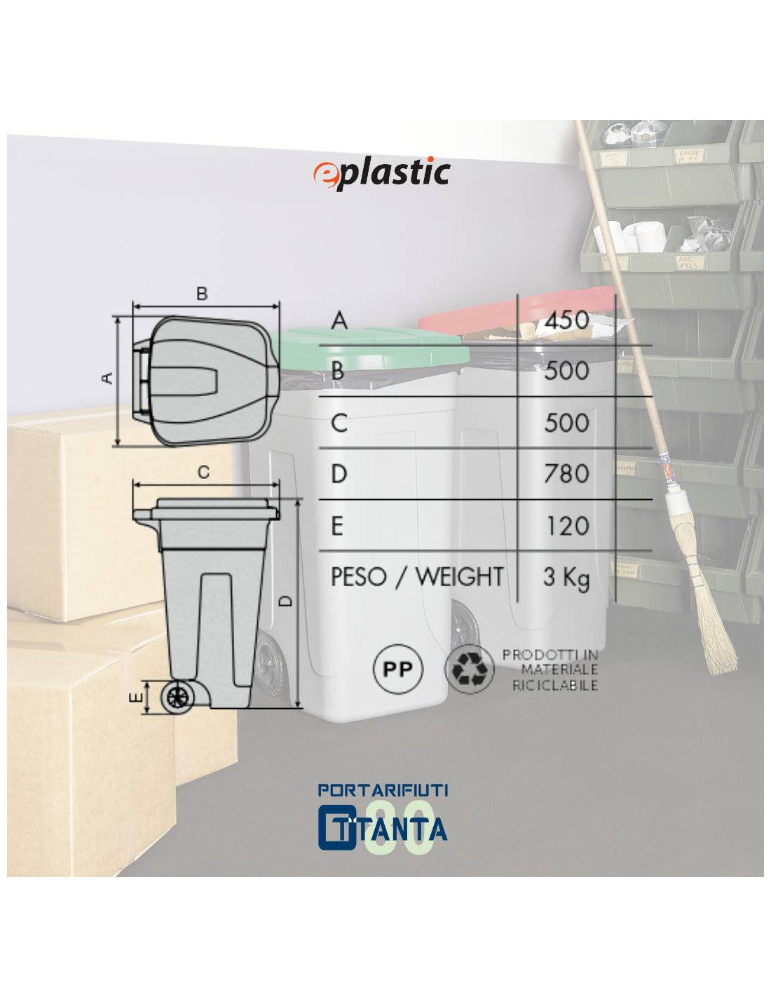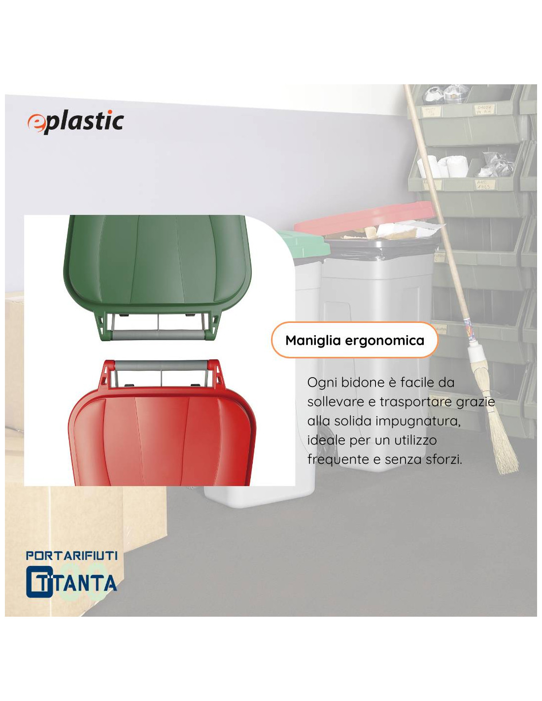 Si tratta di un bidone adatto sia ad uso interno che esterno, leggero e facile da trasportare con elevata resistenza ad agenti atmosferici e chimici; ideale per la raccolta differenziata.
