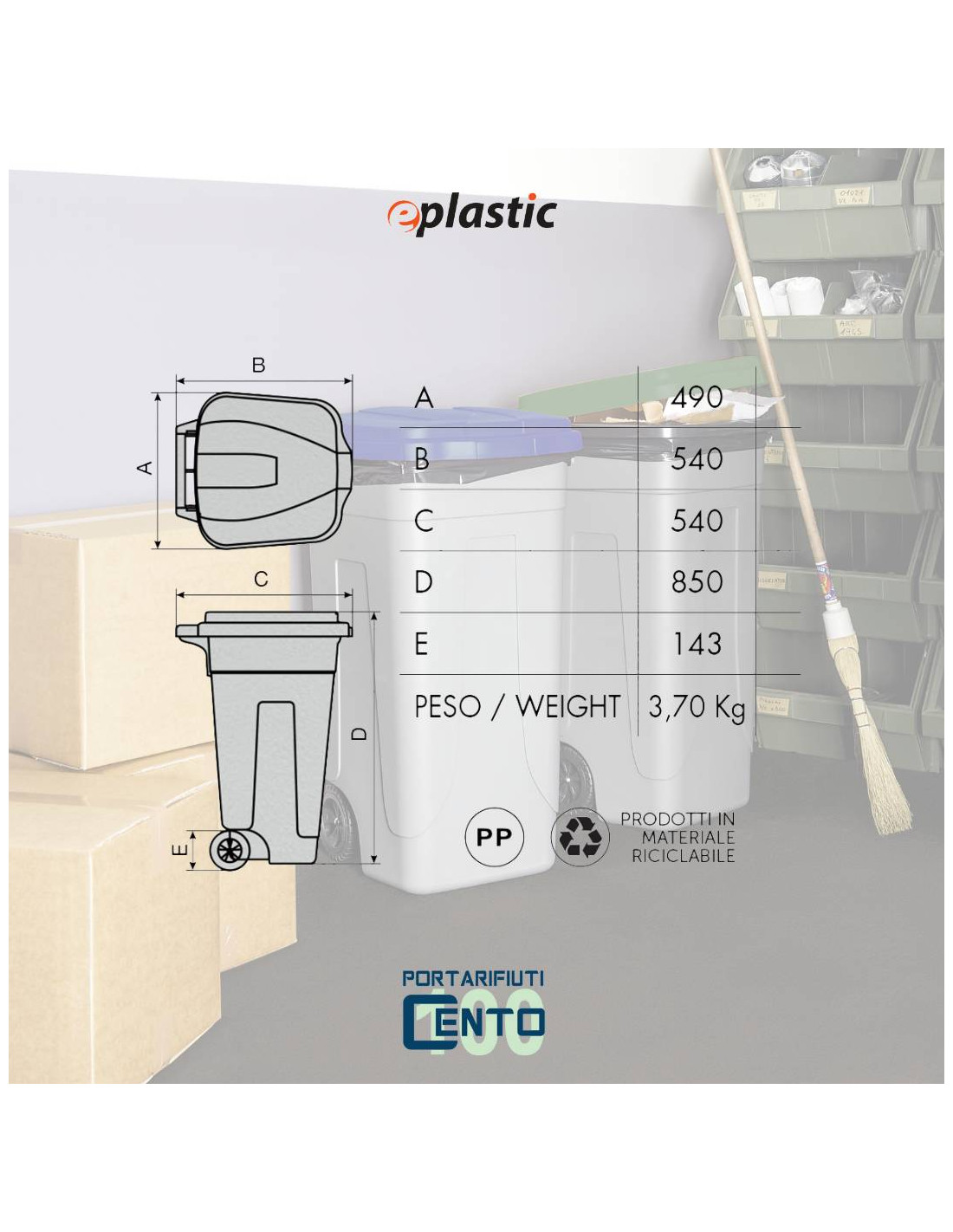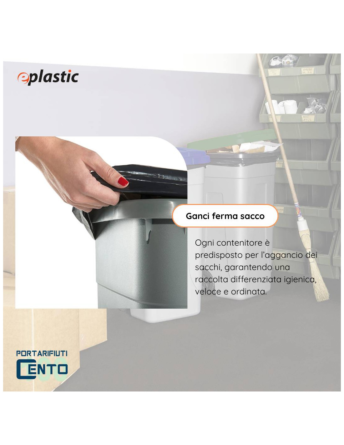 Si tratta di un bidone adatto sia ad uso interno che esterno, leggero e facile da trasportare con elevata resistenza ad agenti atmosferici e chimici; ideale per la raccolta differenziata.