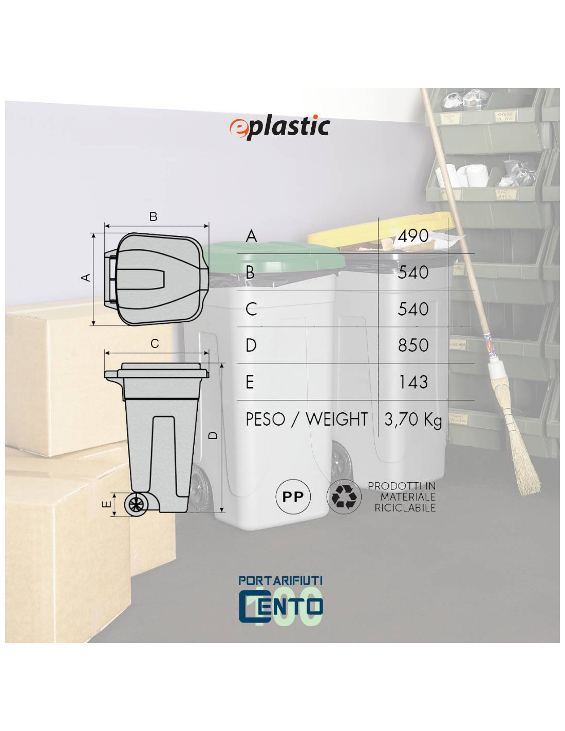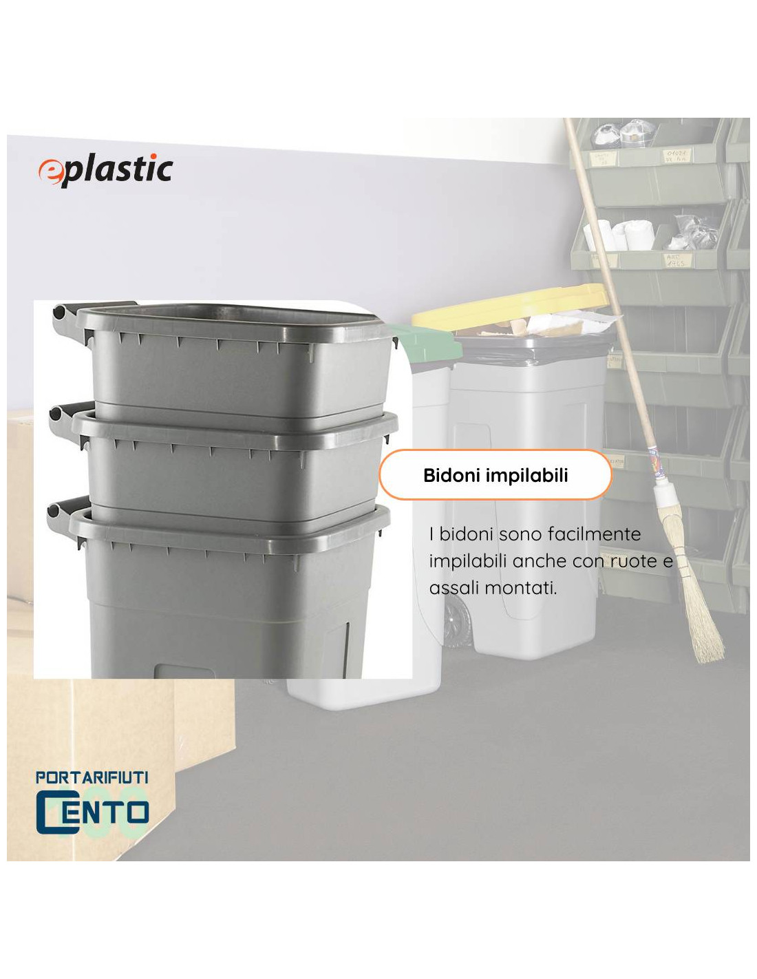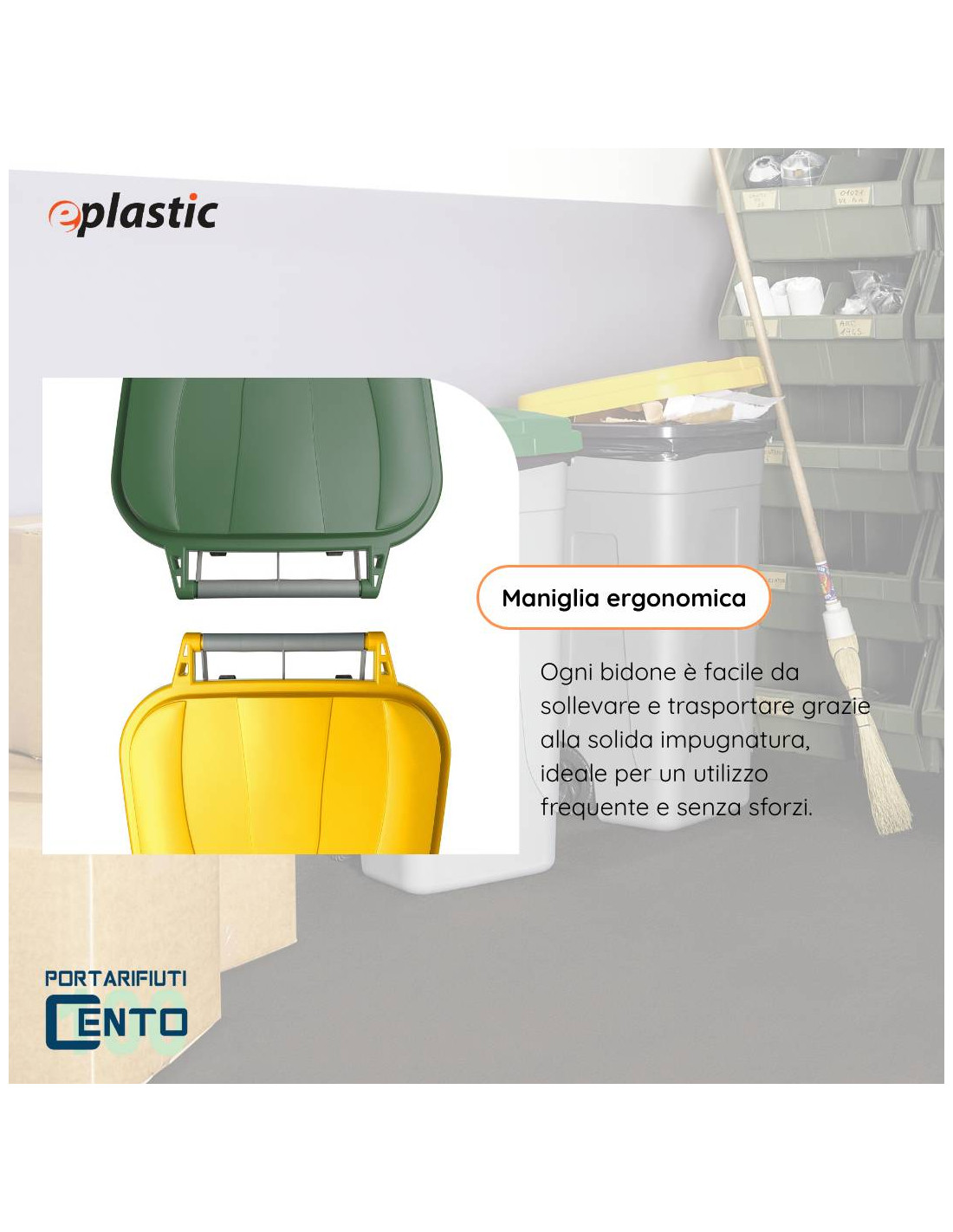 Si tratta di un bidone adatto sia ad uso interno che esterno, leggero e facile da trasportare con elevata resistenza ad agenti atmosferici e chimici; ideale per la raccolta differenziata.