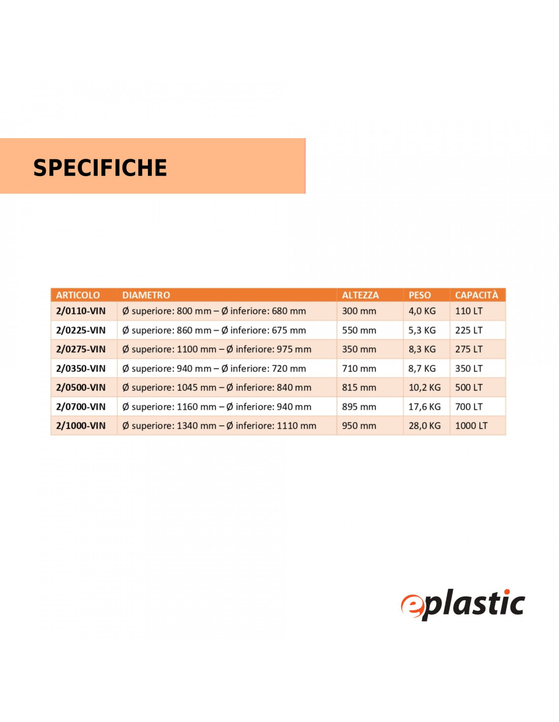 I mastelli, in tutte le versioni disponibili, hanno pareti e fondo chiusi. Non sono previsti fori se non per il rubinetto (solo per alcuni modelli)