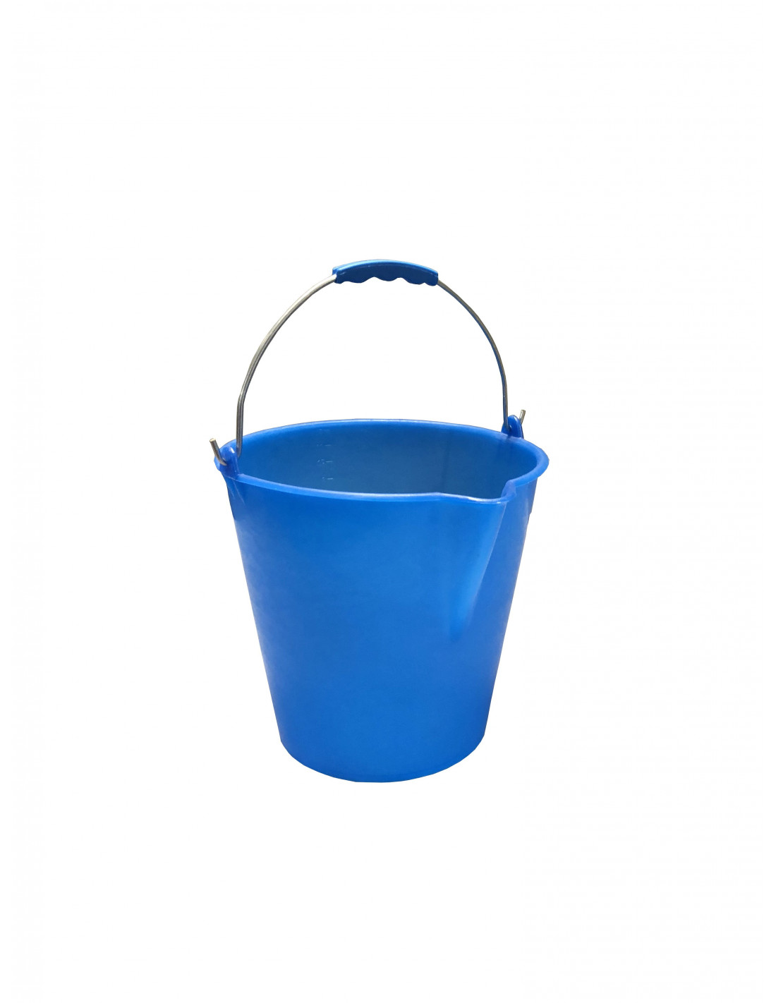 Pratico e resistente secchio graduato in PELD (Polietilene a bassa densità) azzurro con manico in acciaio zincato e maniglia ergonomica. Disponibile nelle varianti azzurro e bianco neutro