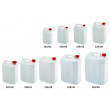 Tanica in PEHD (Polietilene ad alta densità) neutro con tappo in PP (Polipropilene) rosso ideale per trasporto liquidi e idonea al contatto con alimenti.