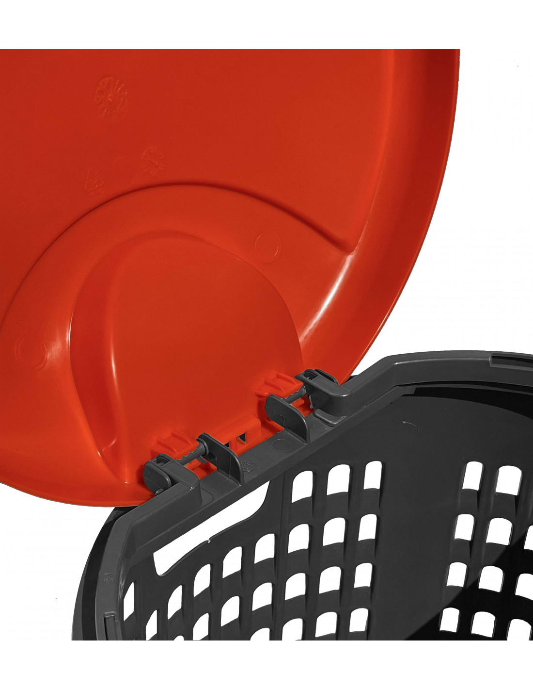I bidoni per raccolta differenziata da 120, 240 e 360 e i cassonetti da 660, 770 e 1100 litri sono compatibili con i mezzi incaricati alla raccolta di rifiuti (presa frontale tipo A, conforme alla normativa EN 840)