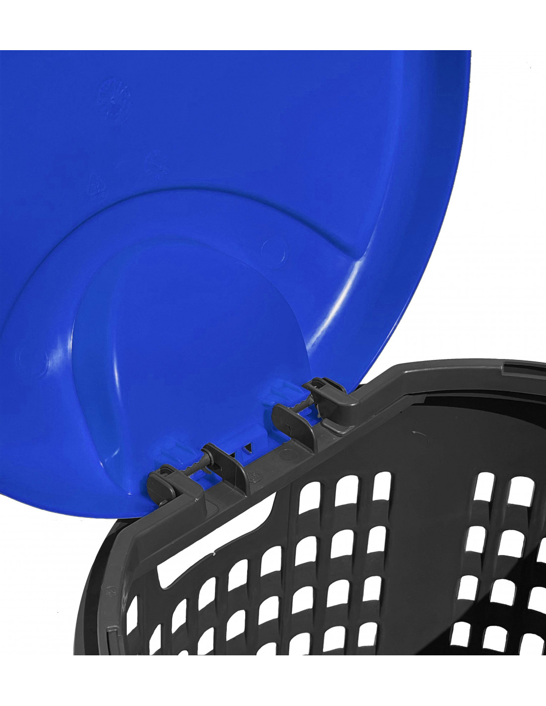 Trespolo porta sacco 110 litri in PEHD (Polietilene ad alta densità) con fondo grigio e coperchio colorato: blu, giallo, rosso o verde